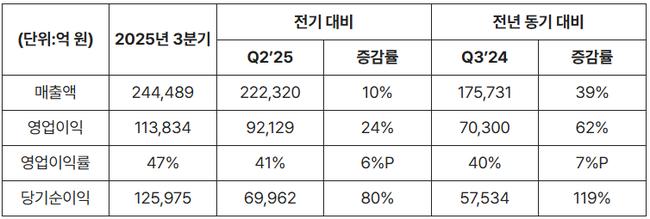 2025년 3분기 경영실적 비교표 (K-IFRS 기준)