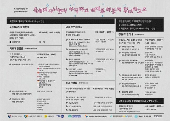 국립목포대학교가 추진한 ‘청계 후문 골목축제’가 지난 10월 28일부터 29일까지 이틀간 청계동 후문 일대에서 성황리에 열렸다. 이번 축제는 지역 상권 활성화와 청년문화 확산을 목표로 기획돼, 행사 기간 동안 해당 구역이 ‘차 없는 거리’로 운영되었다.