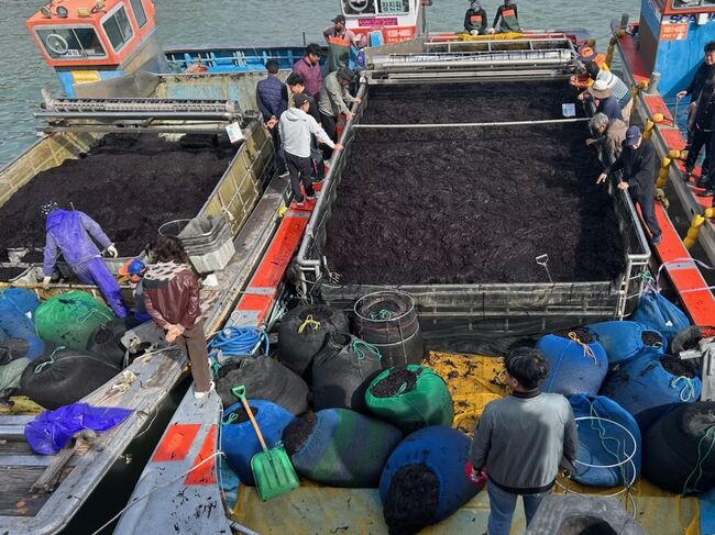 진도군에 따르면 지난 10월 30일, 고군면 원포위판장과 회동위판장에서 올해 첫 물김 거래가 이뤄졌으며, 거래 가격은 한 포대(120kg) 기준 최저 32만 원에서 최고 61만 2천 원으로 형성됐다.